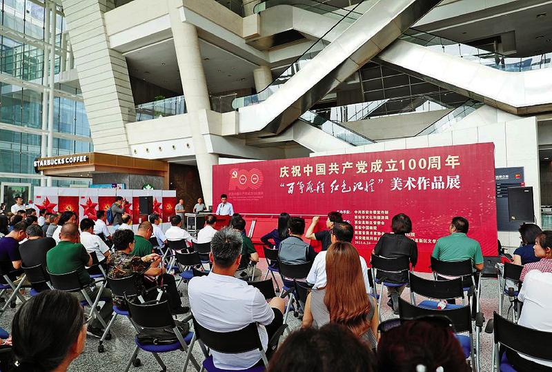 6月24日下午,西安市庆祝中国共产党成立100周年“百年历程红色记忆”美术作品展在西安高新区开幕首展。