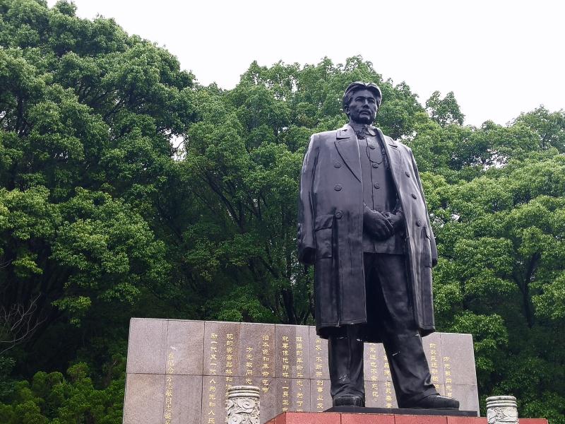 犹记那一天下午,在小雨中我来到离纪念碑不远处山坡上的陈阿金烈士墓前瞻仰。烈士墓呈八字状,一侧石壁上是陈阿金烈士生平,另一侧石壁上是伍修权为陈阿金烈士的题词——“战斗中的英雄,工人中的楷模”。进而得知,陈阿金原名陈建金,江苏省阜宁县人。1925年加入中国共产党,参加过五卅运动和上海工人武装暴动。1934年1月,当选为中华苏维埃共和国中央执行委员会委员。1934年8月28日,红三军团第五师政治委员陈阿金亲临前沿阵地指挥万年亭战斗,遭遇敌机空袭,壮烈牺牲,时年36岁。陈阿金烈士墓周围草木郁郁葱葱,被雨水打湿的几束菊花和几个花圈告诉我们,有人来到这里凭吊烈士。