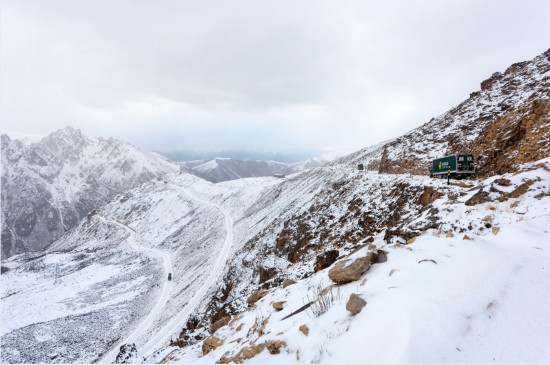 其美多吉与同事驾车行驶在雪线邮路上(资料照片)。其美多吉是中国邮政甘孜县分公司邮运驾驶组的一名邮车司机,往返在甘孜县与德格县之间。这段路程是四川省甘孜州绵延5866公里、平均海拔超过3500米的雪线邮路最危险的一段。新华社发(周兵摄)