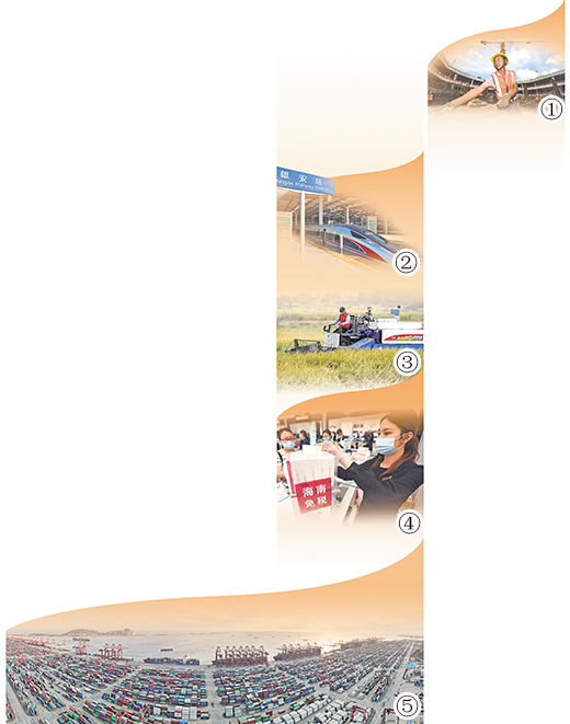 图①:施工人员在深圳前海综合交通枢纽建设现场忙碌。